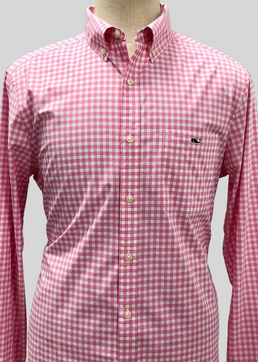 Camisa de botones Vineyard Vines 🐳 con patrón de cuadros gingham en color rosado y blanco Talla L Entalle Regular