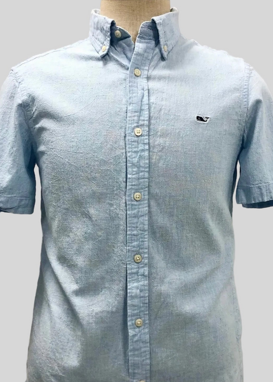 Camisa de lino Vineyard Vines 🐳 color celeste manga corta Talla M Entalle Clásico