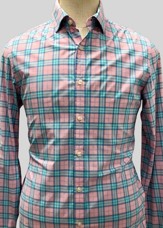 Camisa de botones Vineyard Vines 🐳 Performance de cuadros en color rosado y celeste Talla S Entalle Slim Fit