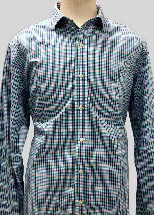 Camisa Polo Ralph Lauren 🏇🏼 color blanco de cuadros multicolor Talla XXL Entalle Slim Fit