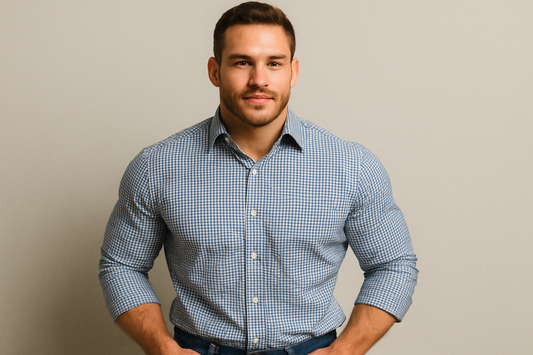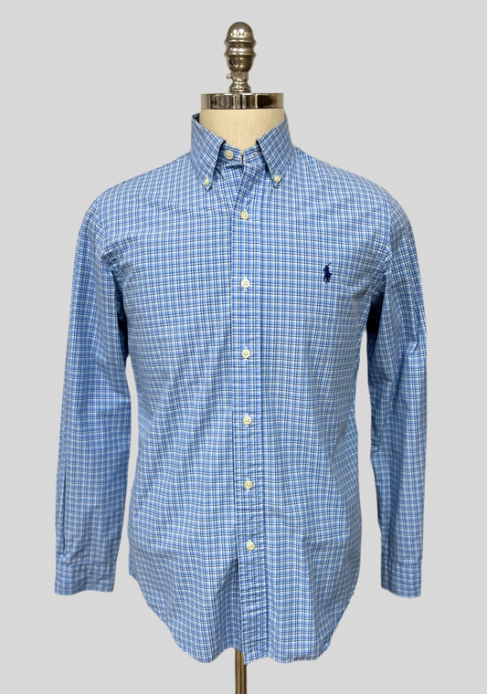 Camisa Polo Ralph Lauren 🏇🏼 color celeste con patron de cuadros en azul navy y blanco Talla M Entalle Regular