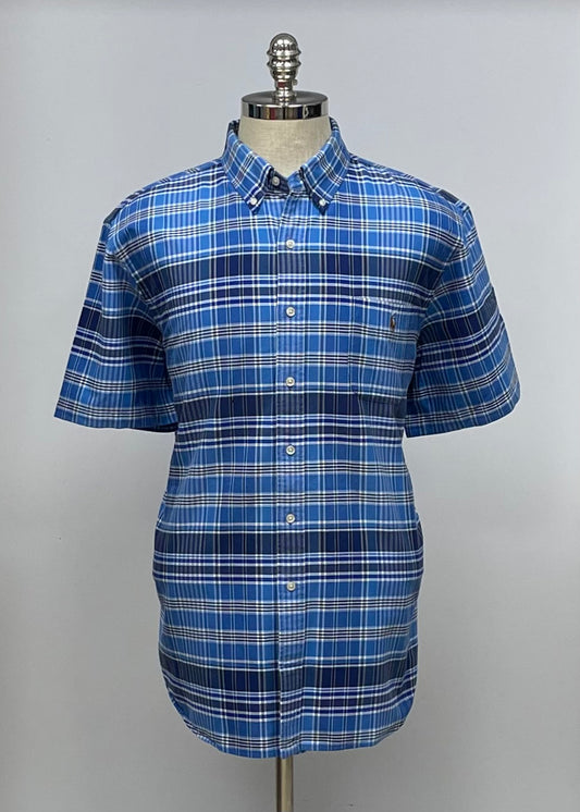 Camisa Polo Ralph Lauren 🏇🏼 manga corta color azul con patrón de cuadros blanco y azul navy Talla XXL Entalle regular