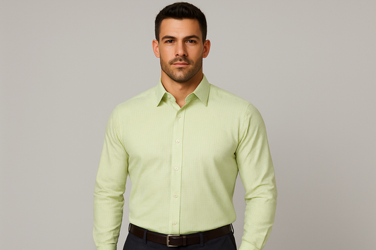Camisa de botones Hugo Boss 🇩🇪 con patron de finos cuadros en verde claro y blanco Talla L Entalle Regular Fit
