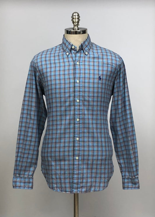 Camisa Polo Ralph Lauren 🏇🏼 color celeste con patron de cuadros en rojo y verde Talla M Entalle Regular