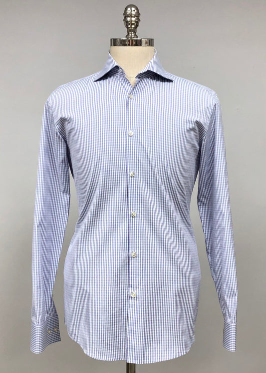 Camisa de botones Hugo Boss 🇩🇪 color blanco con patrón de cuadros color morado y celeste Talla M Entalle Slim Fit