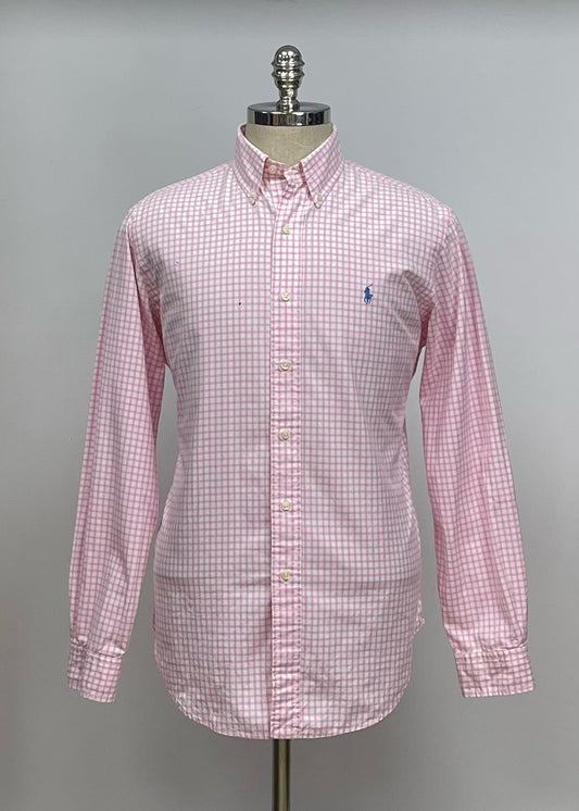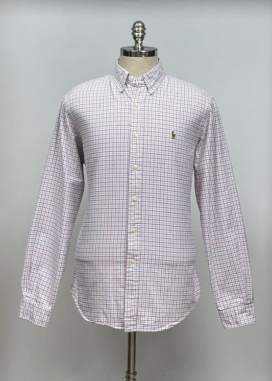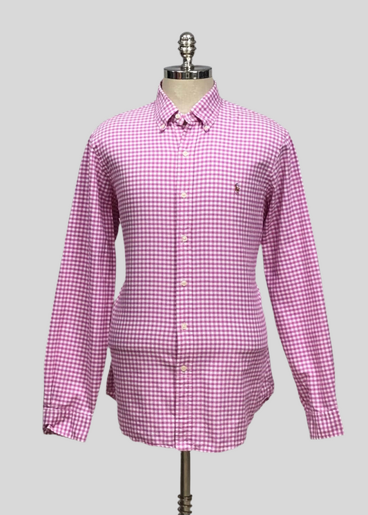 Camisa Polo Ralph Lauren 🏇🏼 Oxford con patron de cuadros gingham rosado intenso y blanco Talla L Entalle Regular