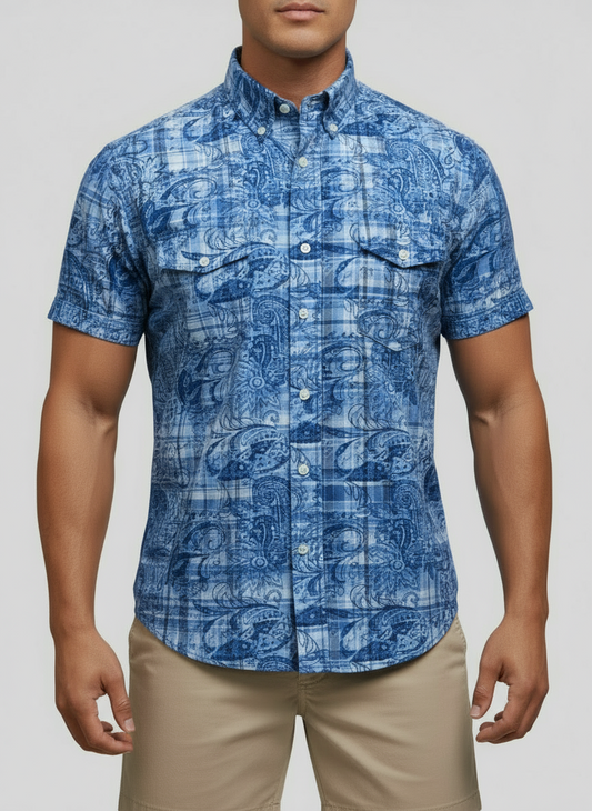 Camisa de botones Polo Ralph Lauren 🏇🏼 color azul indigo y blanco con diseño floral Talla M Entalle Regular