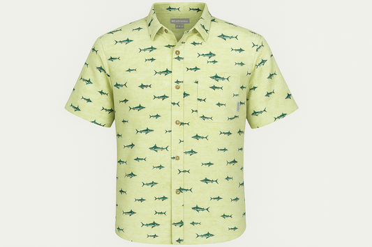 Camisa Columbia 🔹Color verde claro con diseño de peces Manga corta Talla L