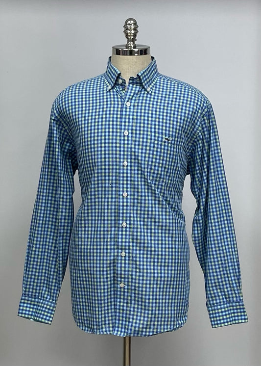 Camisa de botones Vineyard Vines 🐳 con cuadros en color azul, celeste y verde Talla L Entalle Regular