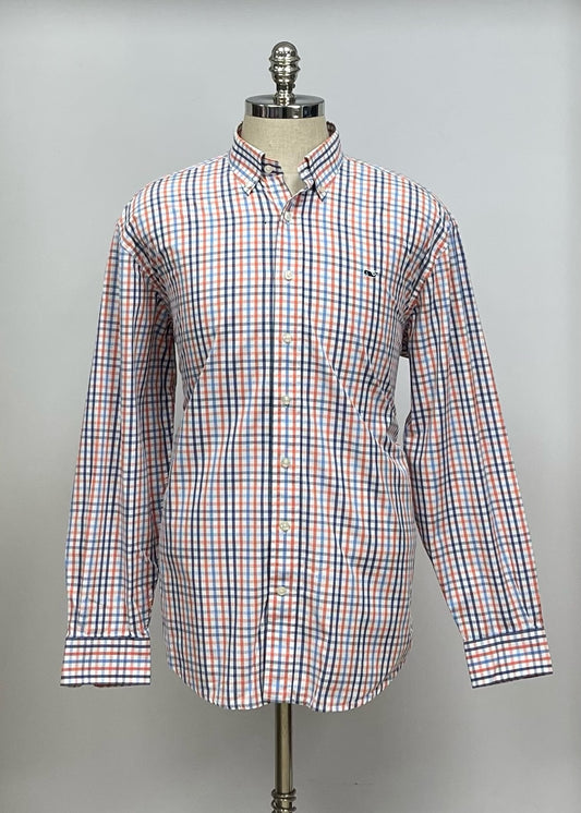 Camisa de botones Vineyard Vines 🐳 color blanco de cuadros en color naranja, azul y celeste Talla L Entalle Regular