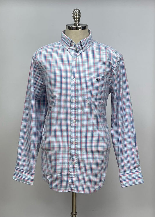 Camisa de botones Vineyard Vines 🐳 color blanco de cuadros en color rosado, azul y celeste Talla L Entalle Clásico