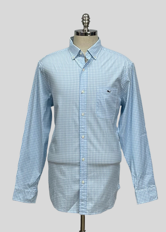 Camisa Vineyard Vines 🐳 de cuadros gingham en color celeste claro y blanco Talla L Entalle Clasico
