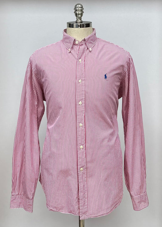 Camisa Polo Ralph Lauren 🏇🏼 con patron de rayas en color rosado y blanco Talla M Entalle Regular