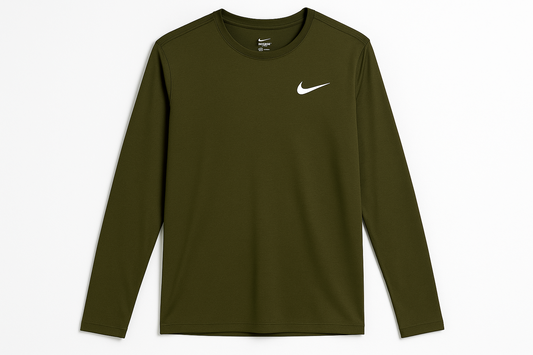 Camiseta de entrenamiento cuello redondo Nike ✔️ color verde oliva manga larga Talla XL