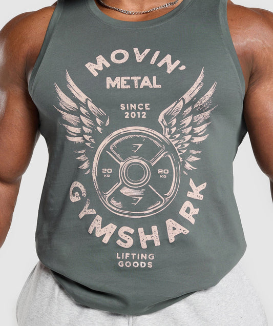 Camiseta de entrenamiento sin mangas Gymshark 🏋🏽 Color gris con diseño Movin Metal en color rosado Talla M