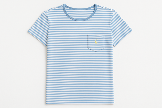 Camiseta de mujer cuello redondo Polo Ralph Lauren 🏇🏼 con patron de rayas en color celeste y blanco Talla M Entalle Regular