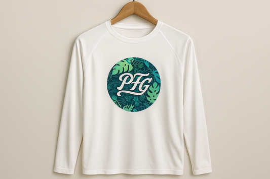 Camiseta de mujer cuello redondo Columbia 🔷 color blanco con logo circular estampado manga larga Talla L