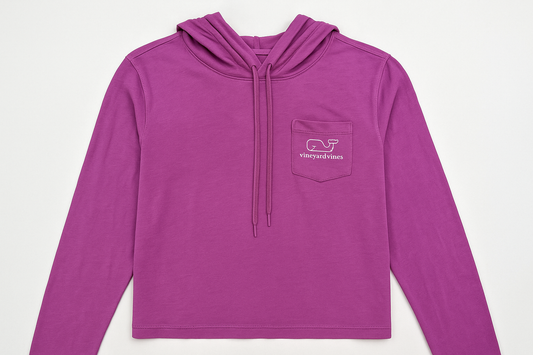 Camiseta con capucha de mujer Vineyard Vines 🐳 color fucsia y logo en blanco con bolsillo Talla M