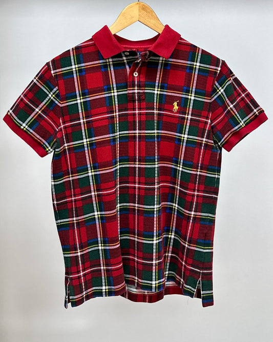 Camiseta Polo Ralph Lauren 🏇🏼 de niño con cuadros tartan en color rojo, verde oscuro y blanco Talla M (10-12) Entalle Custom Slim Fit
