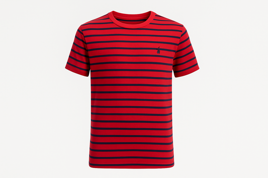 Camiseta cuello redondo de niño Ralph Lauren 🏇🏼 de rayas en color rojo y color azul navy Talla L (14-16) Entalle Regular