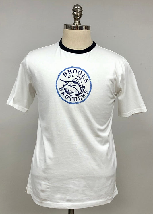 Camiseta cuello redondo Brooks Brothers 🐑 color blanco y logo marino en azul Talla S