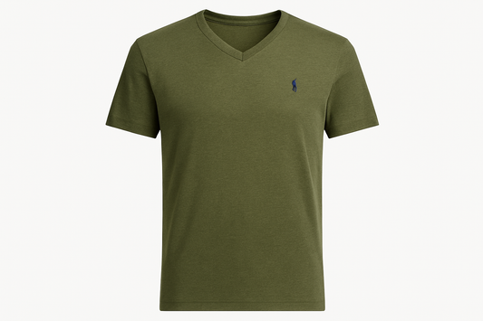 Camiseta cuello V de niño Ralph Lauren 🏇🏼 Color verde olivo Talla L (14-16) Entalle Regular