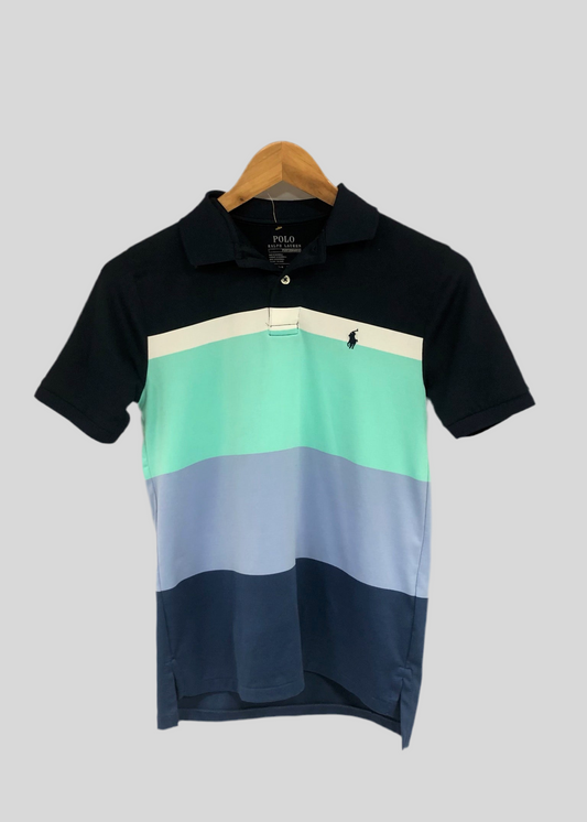 Camiseta Polo de niño Ralph Lauren 🏇🏼 Con franjas en color azul, blanco, turquesa y celeste Talla M (10-12) Entalle Regular
