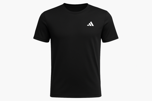 Camiseta de entrenamiento de niño cuello redondo Adidas 🏃🏻 color negro y rayas en blanco manga corta Talla M (12-14)