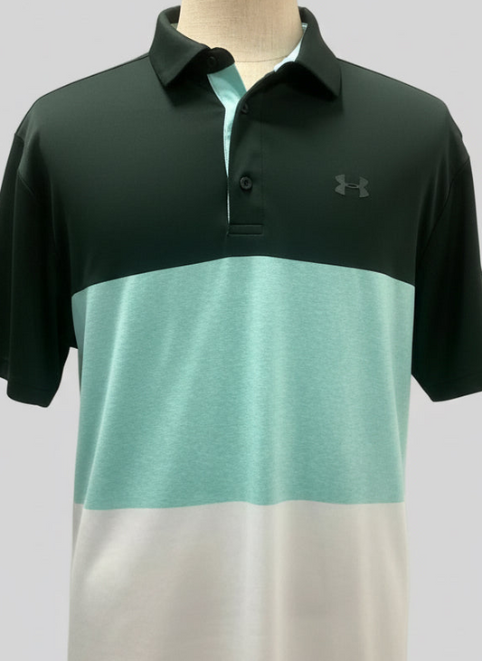 Camiseta polo Under Armour 🏋🏻 de franjas en negro, turquesa y blanco Tela Performance Talla XL Entalle Regular