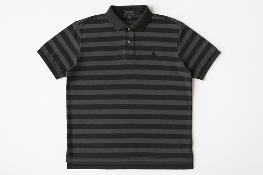 Camiseta Polo Ralph Lauren 🏇🏼 con patron de rayas en color gris oscuro y claro Talla L Entalle Regular