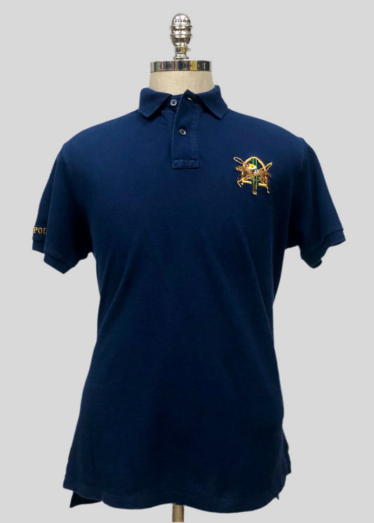 Camiseta Polo Ralph Lauren 🏇🏼color azul navy con logo de escudo dorado Talla L Entalle Custom Fit