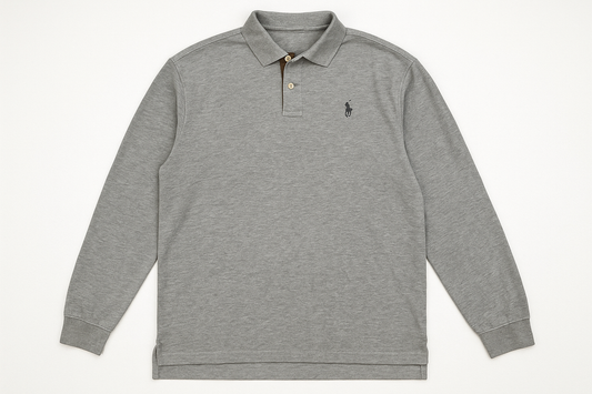 Camiseta Polo Ralph Lauren 🏇🏼color gris claro Manga larga Talla L Entalle Clásico
