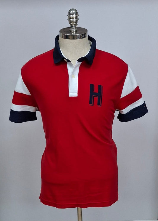 Camiseta Polo Tommy Hilfiger 🇺🇸 color rojo con diseño de logo en azul navy Talla L Entalle Custom Fit