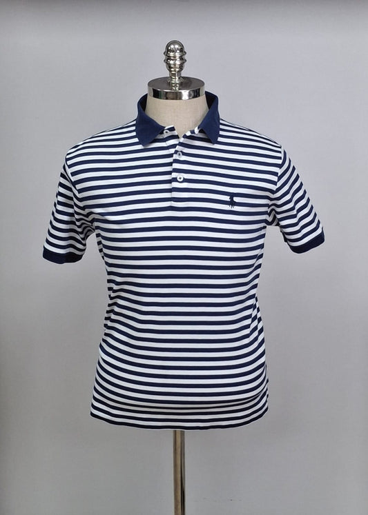 Camiseta Polo Ralph Lauren 🏇🏼 con patron de rayas en color azul navy y blanco Talla M Entalle Custom Fit (ver descripción)