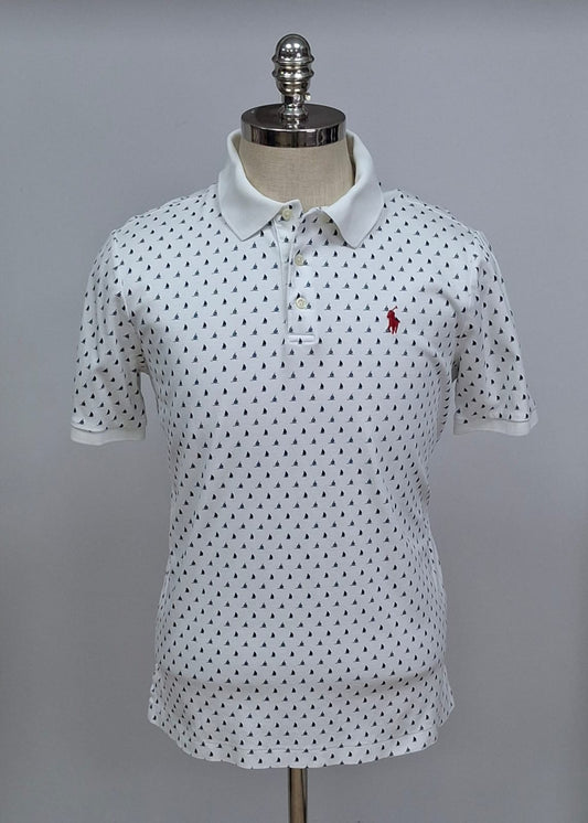 Camiseta Polo Ralph Lauren 🏇🏼 Color blanco con diseño de veleros en color azul Talla M Entalle Clásico