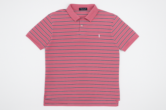 Camiseta Polo Ralph Lauren 🏇🏼 color rosado con patrón de rayas color negro y blanco Talla M Entalle Regular