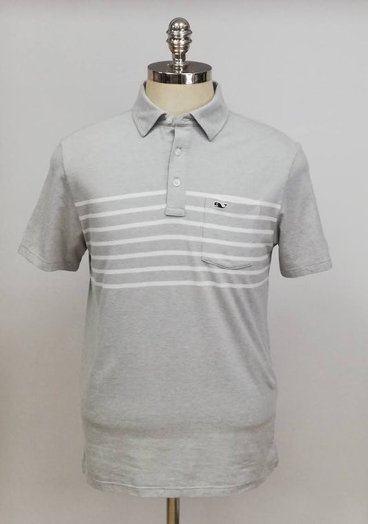 Camiseta Polo Vineyard Vines 🐳 color gris claro con rayas en color blanco Talla S Entalle Regular