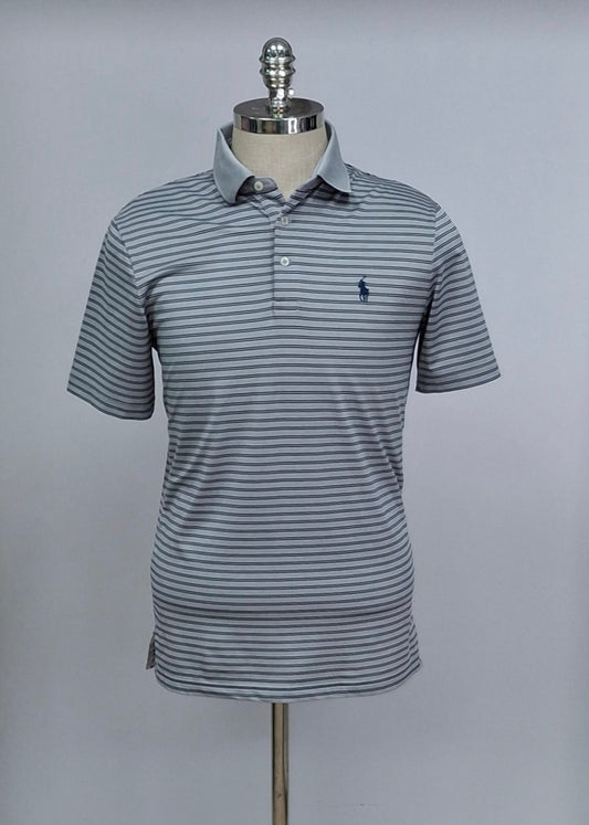 Camiseta Polo Ralph Lauren 🏇🏼 Color gris con patrón de rayas color Azul navy Talla S Entalle Clásico