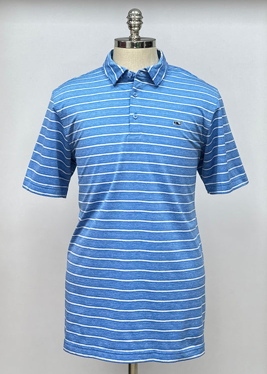 Camiseta Polo Vineyard Vines 🐳 Tela performance color azul con rayas en color blanco Talla L Entalle Regular