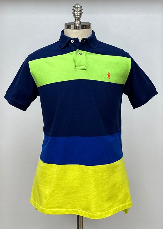 Camiseta Polo Ralph Lauren 🏇🏼 con franjas en color azul navy, verde y amarillo Talla L Custom Fit