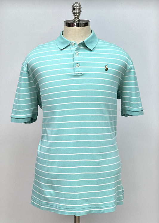Camiseta Polo Ralph Lauren 🏇🏼color turquesa con patrón de rayas blanco Talla XL Entalle Clásico