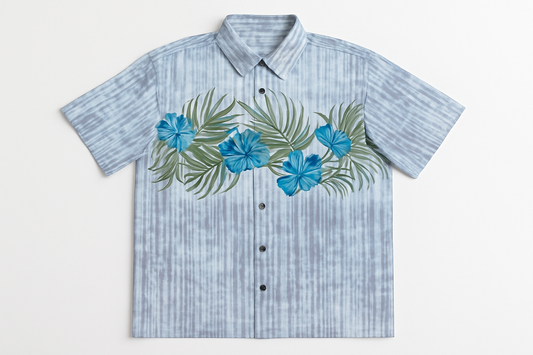 Camiseta Polo Tommy Bahama 🐬 color gris y blanco con diseño floral Talla L Entalle Regular