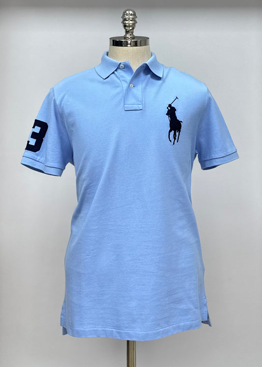 Camiseta Polo Ralph Lauren 🏇🏼color celeste con logo big pony Talla L Entalle Custom Slim Fit