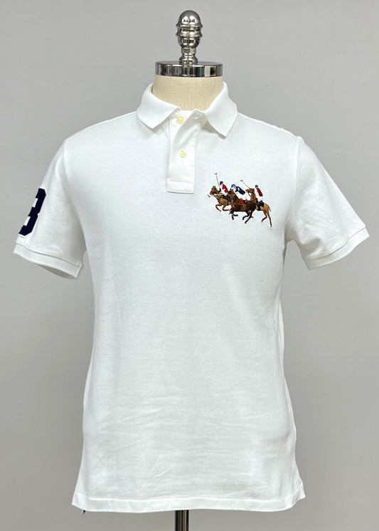 Camiseta Polo Ralph Lauren 🏇🏼color blanco con diseño de 3 caballos Talla M Entalle Custom Slim Fit