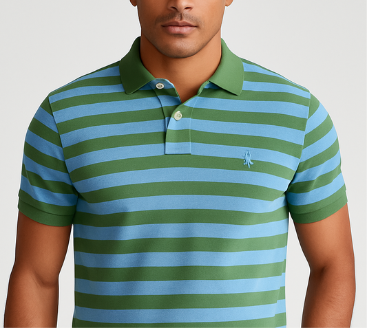 Camiseta Polo Ralph Lauren 🏇🏼 Color gris con patrón de rayas color Azul navy Talla L Entalle Regular