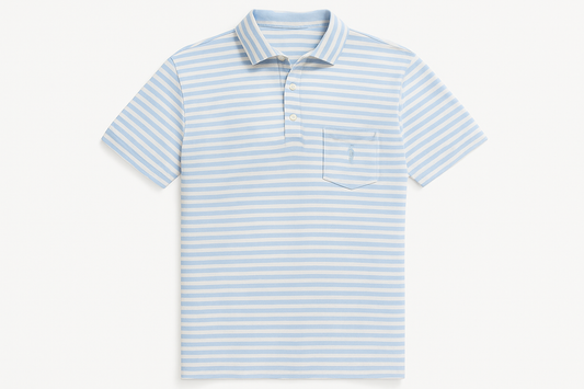 Camiseta Polo ST 🐟 con patrón de rayas color celeste y blanco Talla M Entalle Clásico