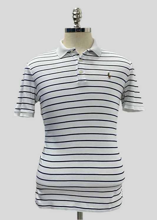 Camiseta Polo Ralph Lauren 🏇🏼 Color blanco con patrón de rayas color Azul navy Talla S Entalle Clásico