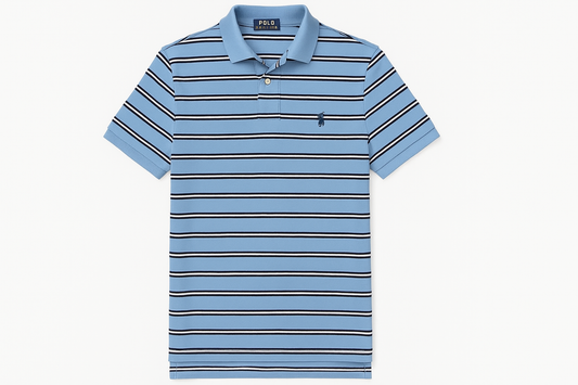 Camiseta Polo Ralph Lauren 🏇🏼 color celeste con patrón de rayas color negro y blanco Talla S Entalle Regular