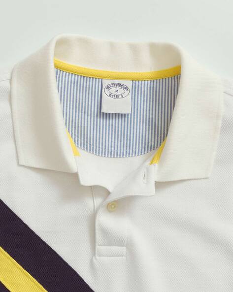 Camiseta Polo Brooks Brothers 🐑 color blanco con franjas en azul y amarillo Talla M Entalle Slim Fit
