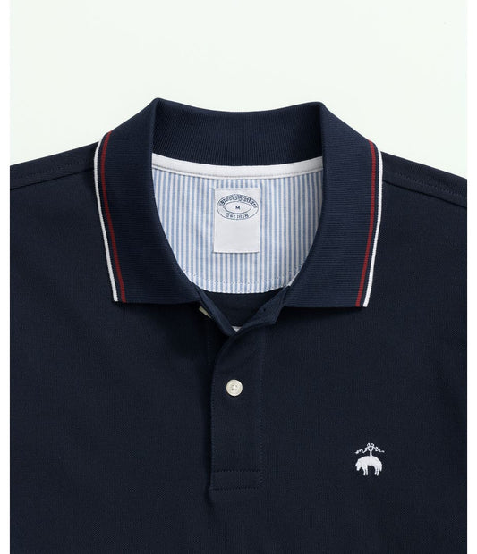 Camiseta Polo Brooks Brothers 🐑 color azul navy con diseño en cuello Talla XXL Entalle Slim Fit